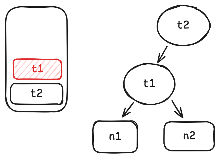 t2.get中调用t1.get时, 将t1记为t2的依赖, 并将t1压栈.
