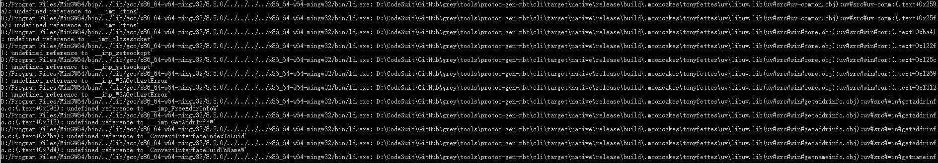 我用的是mingw64,报错 libuv.lib 找不到符号