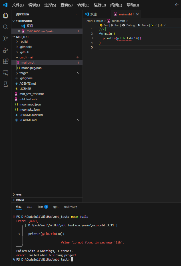 把项目名字改成a或者别的什么(不以test结尾)应该就行了。这里的报错是因为默认创建的模板文件mbt_test.mbt被识别成了测试文件,所以没导入