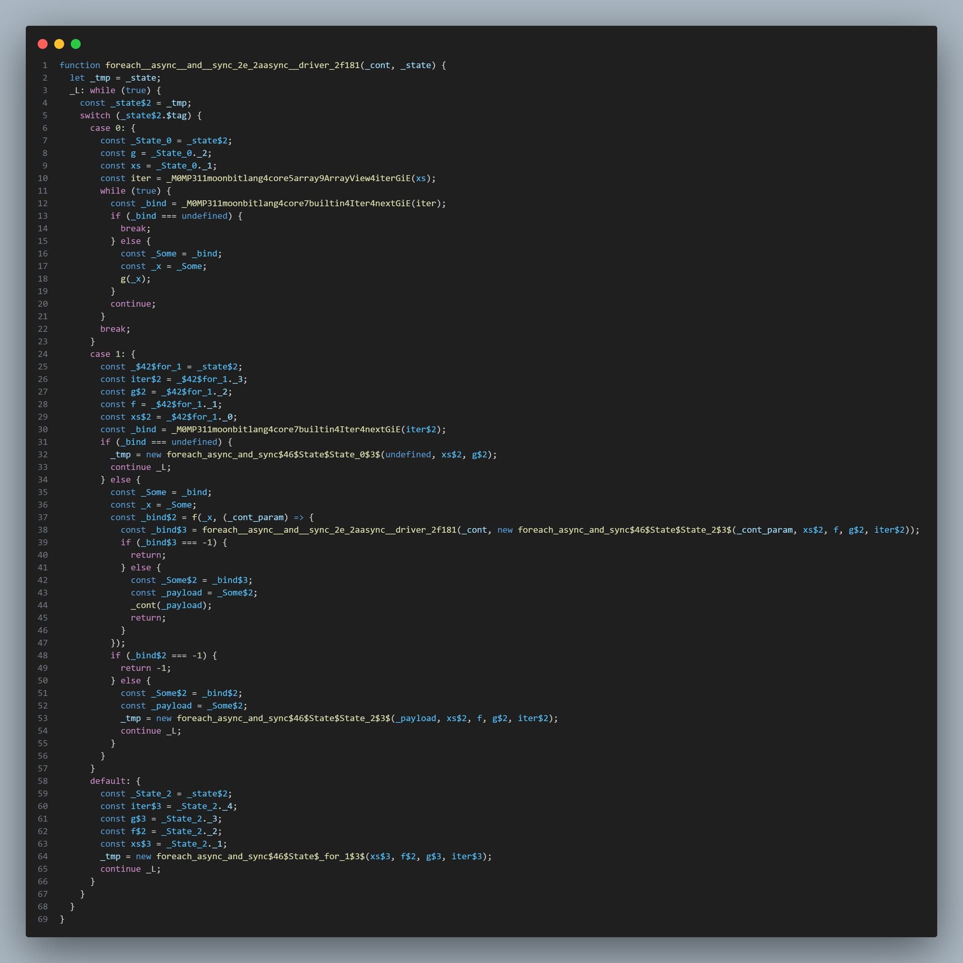 而假如在函数末尾加如其他代码(比如一行println("")), 函数生成如下代码: